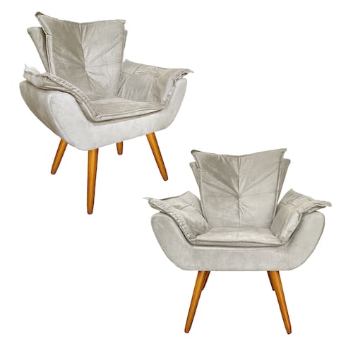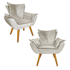Jogo 2 Poltronas Decorativas Estofadas Hall de Entrada Apolo Suede Bege - LM DECOR