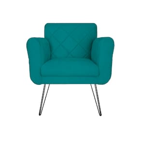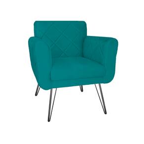 Jogo 2 Poltronas Decorativas Para Escritório Pés de Ferro Isabella Suede Azul Turquesa - LM DECOR