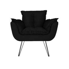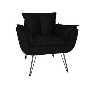 Jogo 2 Poltronas Decorativas Quarto Closet Pés de Ferro Opala Suede Preto - LM DECOR