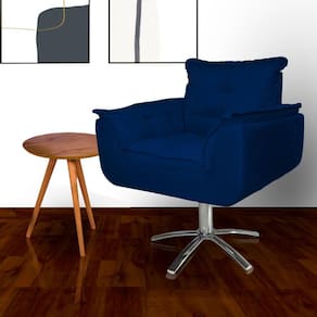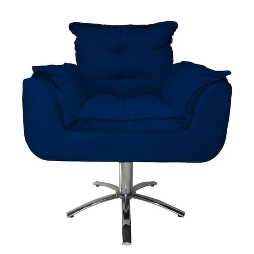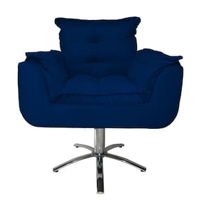 Jogo 2 Poltronas Estofada Consultório Base Giratória de Metal Opala Suede Azul Marinho - LM DECOR