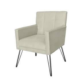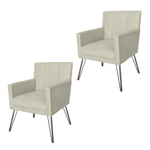 Jogo 2 Poltronas Estofadas Para Consultório Pés de Ferro Onix Corano Bege - LM DECOR