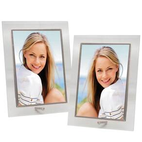 Kit 2 Porta-Retratos Vidro Reto Filete Prata 15x20 Vertical