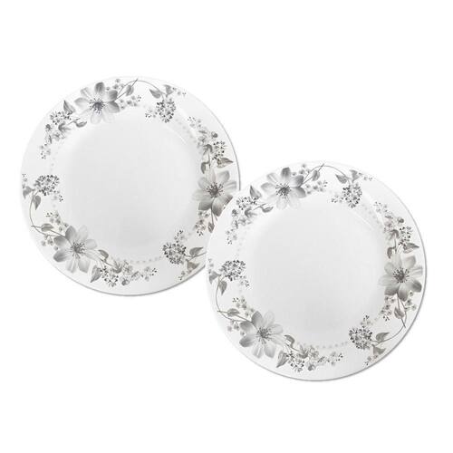 Jogo 2 Prato de Sobremesa Vidro Branco Flores Cinza Flowers Grey 20cm Em Casa Tem