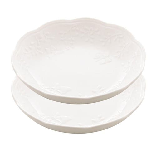 Jogo 2 Prato Fundo Branco de Porcelana New Bone Butterfly Flower Flores 21cm Lyor