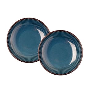 Jogo 2 Prato Fundo de Massas Cerâmica Linear Azul Premium 23cm Lyor