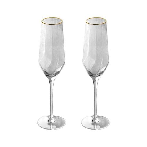 Jogo 2 taças cristal champagne 300 ml borda dourada linha