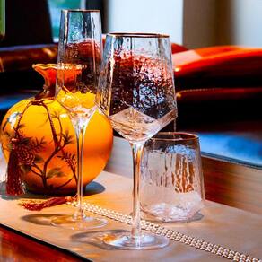 Jogo com 2 taças de cristal para champagne 300 ml borda dourada linha taj wolff