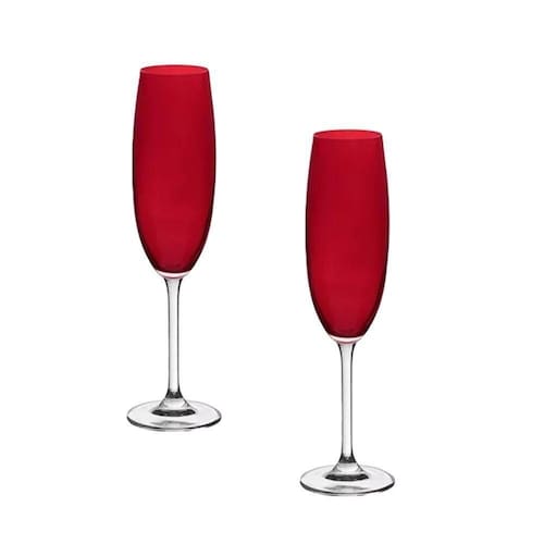 Jogo 2 Taças Cristal Vermelho Carmim Champagne 220ml Bohemia
