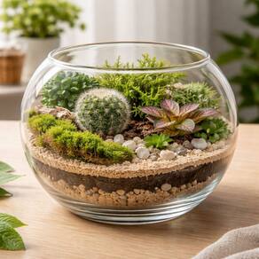 Seu formato redondo estilo aquário valoriza qualquer composição, sendo ideal para terrários, arranjos florais, suculentas, cactos, velas decorativas, pedras, areia e projetos de decoração em geral. A borda e a base reforçadas proporcionam segurança adicional durante o manuseio e o uso.