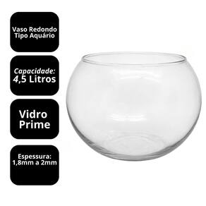 O Vaso de Vidro Redondo Tipo Aquário 4,5 litros é uma peça versátil, elegante e indispensável para quem busca decoração moderna e criativa. Produzido em vidro prime de alta qualidade, possui espessura reforçada entre 1,8mm e 2mm, garantindo maior resistência, estabilidade e durabilidade no uso diário.