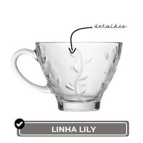 Xícara de Chá de Vidro Flores Clear Lily 220ml Em Casa Tem
