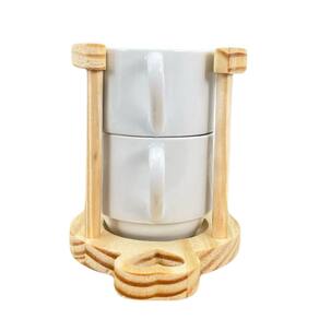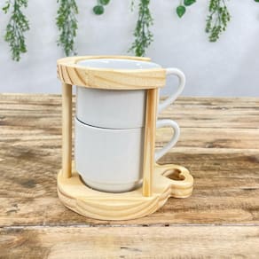 Jogo 2 Xicaras Café/Chá 200ml Empilháveis com suporte pinus - Porcelana BrancaPeças de porcelana feitas de material de alta qualidade, queimados em alta temperatura, o que os torna fortes, resistentes e com alto brilho, e deixa qualquer ambiente mais bonito e moderno. A porcelana tem uma enorme vantagem sobre outros materiais, pois é fácil de limpar e não absorve cheiro, o que deixa a peça e o ambiente livre de mal cheiro.São resistentes ao forno e micro-ondas. Cor BrancaCapacidade 200mlSuporte em pinus OBS: Por se tratar de madeira de pinus natural, pode existir pequenas variações na tonalidade das cores da madeira.OBS: Pode haver variação de tonalidade entre as peças devido a diferentes lotes de queima.Embalagem contêm 3 peças (2 xicaras x 1 suporte) Marca: Antilope Decor Porcelanas