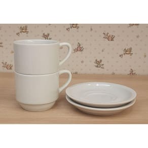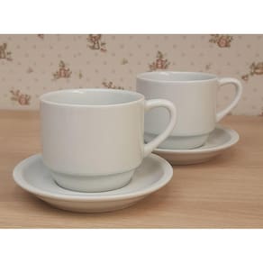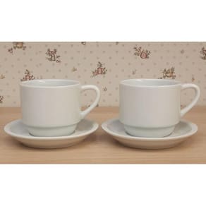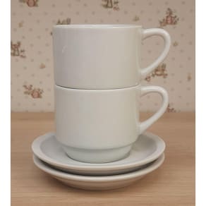 Jogo 2 xícaras de Café e Chá com pires - 200 ml Empilháveis - Porcelana branca