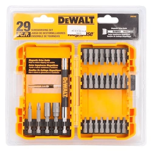 O Jogo 29 Peças Para Parafusar Com Estojo DW2162 DeWalt oferece alta durabilidade com seu aço resistente, proporcionando uma longa vida útil. A estrutura central sólida aumenta a resistência e minimiza o risco de quebras. As peças também passam por tratamento térmico para suportar desgaste e evitar quebras. O conjunto inclui pontas nos formatos Phillips, Fenda, Quadrada e Torx, garantindo versatilidade para diferentes tipos de trabalhos.