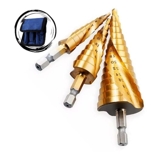 Jogo 3 broca escalonada titanio 3-12 4-12 -20mm