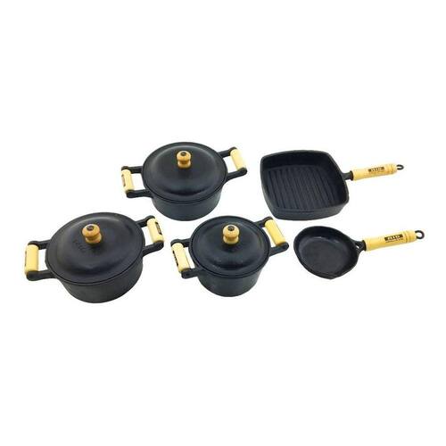 Jogo 3 Caçarolas de Ferro Com Tampa e 2 Frigideiras Sem Tampa