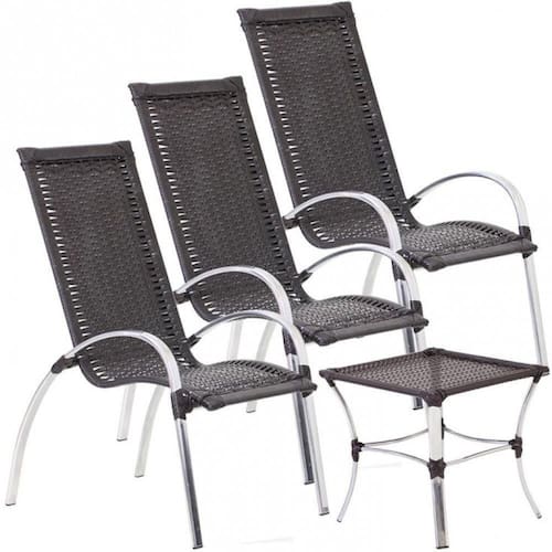 Jogo 3 Cadeiras Mesa Alumínio P/ área Piscina E Jardim Trama Preto