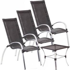 Jogo 3 Cadeiras e Mesa Aluminio para Area Jardim e Piscina Trama