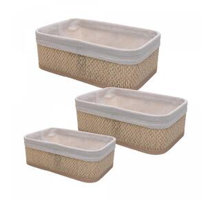 Conjunto 3 Cestas Retangulares com Forro em Tecido Cozy Bambu - Lyor