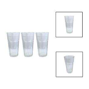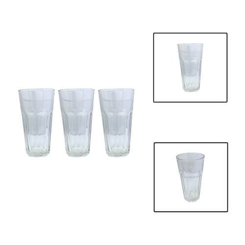 Jogo com 3 Copos De Vidro da linha Casablanca (365 ml e 14,7 cm de altura), ideal para água, sucos e long drinks. Transparentes, resistentes e com pegada confortável para o uso diário em casa ou no trabalho.