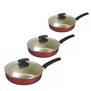 Jogo 3 Frigideiras A.A Premium CherryCream Com Tampa de Vidro Vermelho