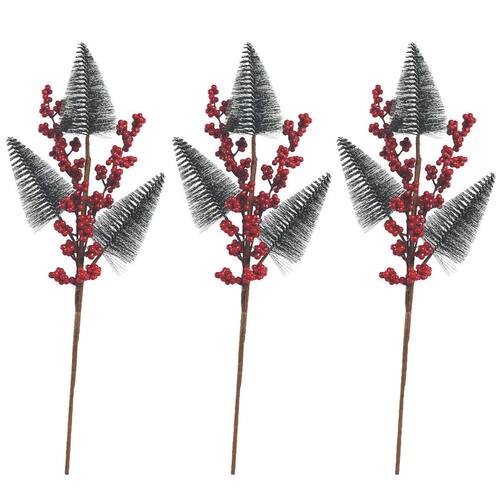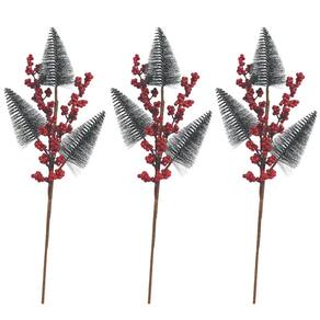 Jogo 3 Galhos Natal Decor 3 Pinheiros Nevados e Berries 48cm