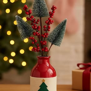 Dê um toque especial e rústico à sua decoração de Natal com o Galho Decorativo com Mini Pinheiros e Berries. Com 48cm de comprimento, este galho combina o charme dos três mini pinheiros com efeito nevado ao contraste vibrante das berries vermelhas, criando um visual natural e acolhedor, perfeito para compor arranjos exclusivos.