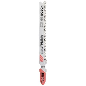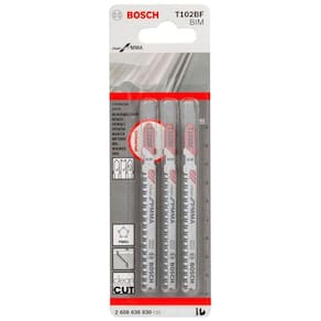 Jogo 3 Lâminas De Serra Tico Tico T102Bf Bosch Para uso em serras tico tico compatíveis com encaixe T Possibilita cortes em materiais acrílico e plásticos termoplásticos abrasivos Os dentes base laterais de precisão produzem cortes limpos