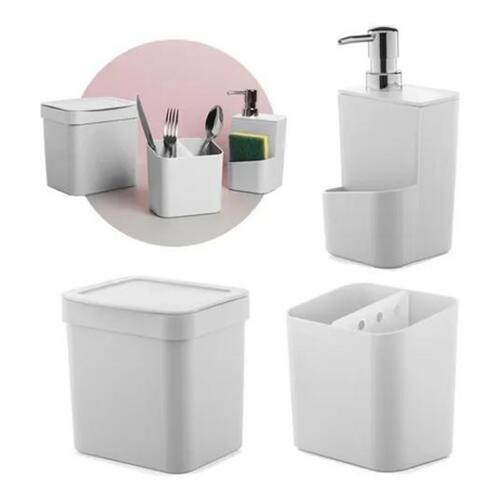 Jogo 3 pçs de cozinha pia trium porta detergente lixeira Cor: branco F6133 maple decor
