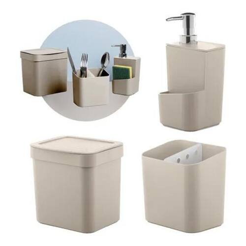 Jogo 3 pçs de cozinha pia trium porta detergente lixeira Cor: bege F6133 maple decor