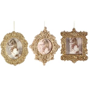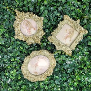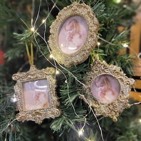 03 unidades Porta Retrato Gliter Dourado Para Árvore Natal 10cm (Quadrado, Oval e Losango Clássico) Ficha Técnica