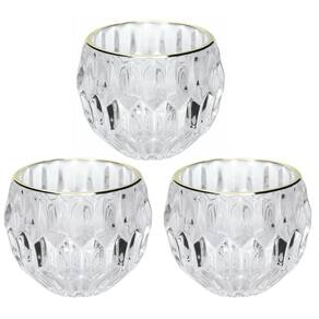 Jogo exclusivo modelo em vidro facetado redondo com borda dourada 3 unidades!