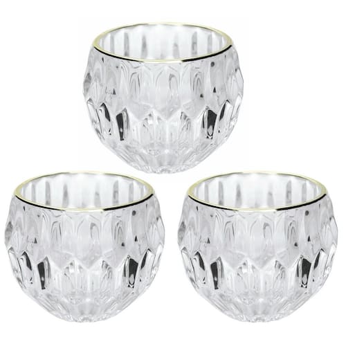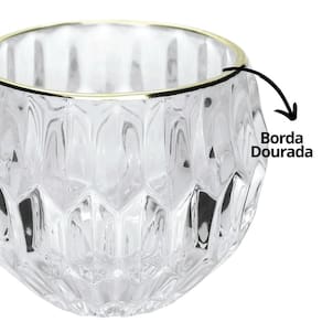 Jogo 3 Porta Velas Castiçal Vidro Facetado Borda Dourado
