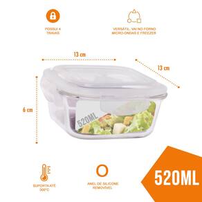 Pote de Vidro com Tampa Hermética Quadrado 520ml