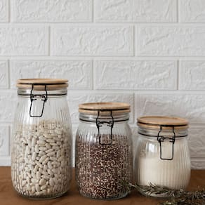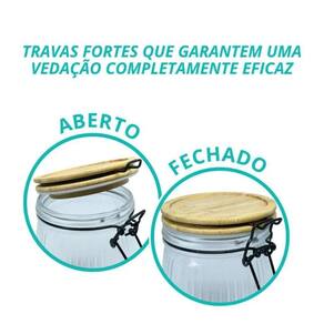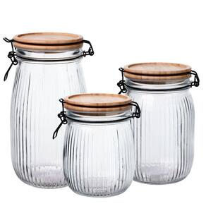 Jogo 3 Potes Vidro Hermético Versalhes Tampa Bambu Trava Prime - Lehaví