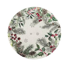 -03 unidades Sousplat Natal Decorado Estampa Pinhas Folhagens e Berrries 33cm - Magizi