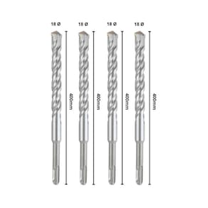Conteúdo da Embalagem: - 04 Brocas SDS Plus 18x310 mm de Aço Carbono e Tungstênio.