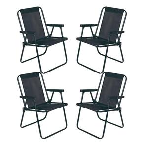 Jogo 4 Cadeira Alta Preta MOR Dobrável Reforçada até 110kg Praia Varanda Camping Jardim