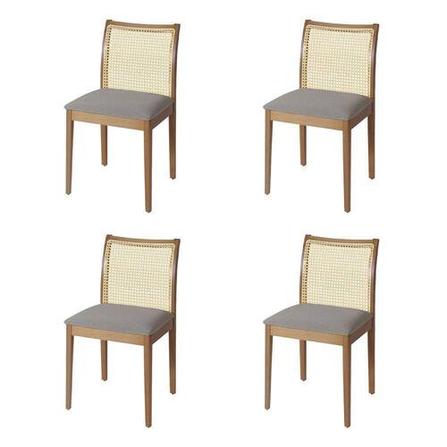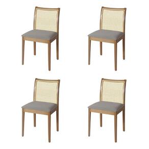 AS IMAGENS SÃO MERAMENTE ILUSTRATIVAS E PODEM SOFRER VARIAÇÕES DE COR E PEQUENOS DETALHES DE ACORDO COM O SEU MONITOR, ILUMINAÇÃO DO AMBIENTE E ATÉ MESMO A SUA PERCEPÇÃO VISUAL.Jogo 4 Cadeiras de Jantar Juliana Jequitibà Natural em Madeira MaciÃa Encosto Palha Linho Cinza
