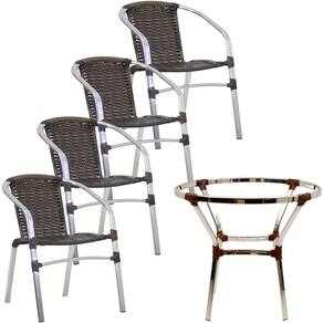 Jogo 4 Cadeiras e Mesa Floripa Alumínio Para Piscina, Área, Jardim Trama - Palha