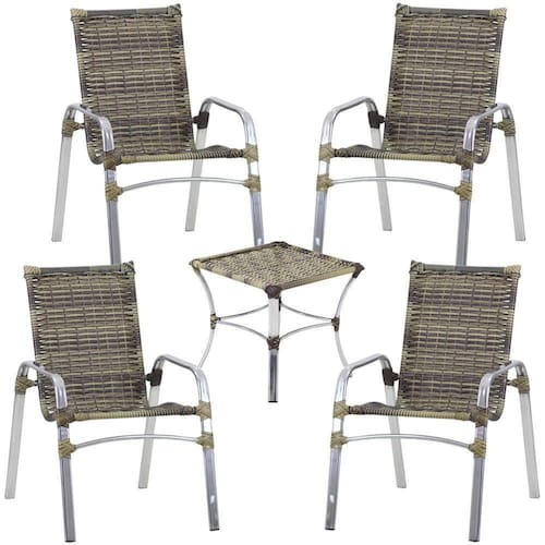 Jogo 4 Cadeiras Emily e Mesa Garden em Aluminio Para Area, Piscina, Jardim Trama
