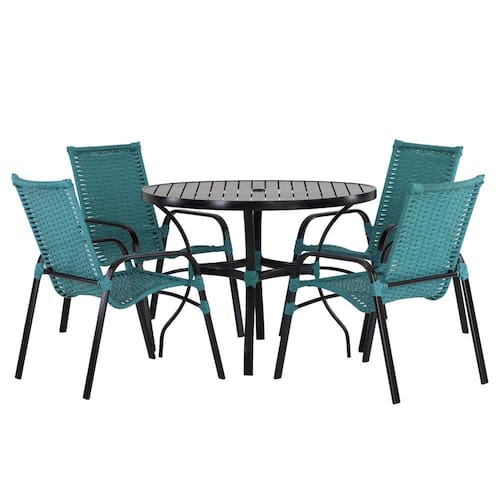 Jogo 4 Cadeiras Emily e Mesa Tampo Ripado em Alumínio Trama - Azul Turquesa
