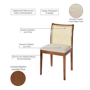 AS IMAGENS SÃO MERAMENTE ILUSTRATIVAS E PODEM SOFRER VARIAÇÕES DE COR E PEQUENOS DETALHES DE ACORDO COM O SEU MONITOR, ILUMINAÇÃO DO AMBIENTE E ATÉ MESMO A SUA PERCEPÇÃO VISUAL.Jogo 4 Cadeiras para Jantar Juliana Jequitibà Terra Estrutura em Madeira MaciÃa Linho Bege