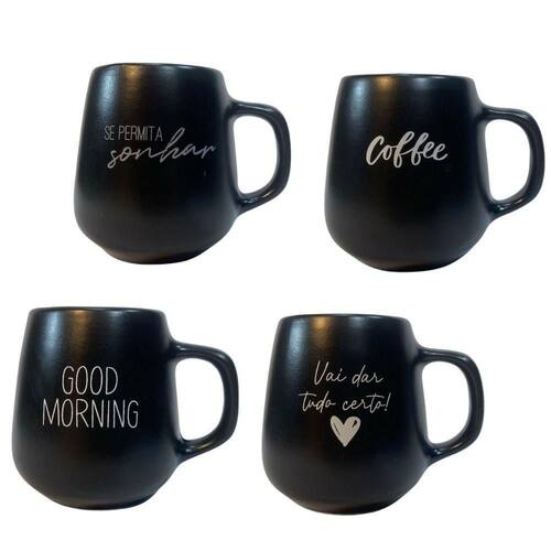 01 Jogo contendo 4 Canecas Bojudas 260ML em Porcelana Fosca Para Cappuccino.