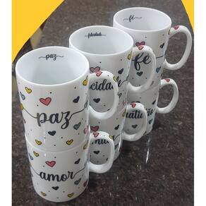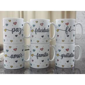 Jogo 4 canecas 300ml Frases Motivacionais - Kit PorcelanaContém 6 canecas com design bem interessante, você pode presentear as pessoas que você gosta. Frases: Amor, Fé, Paz, Felicidade, Gratidão, Família. (seguirá na compra 4 dessas)Forte resistente, pode ir ao micro-ondas. Ótimas para servir café com leite, água e bebidas em geral. Decalques com queima e fixação em alta temperatura, o que dá um brilho e charme há qualquer ambiente.OBS: Embalagem contem 4 unidades Marca: Antilope Decor Porcelanas