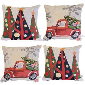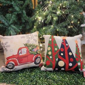 - 04 Unidades Capa Para Almofada Gobelin Natal 45x45cm Estampa Árvore de Natal e Carro Vintage