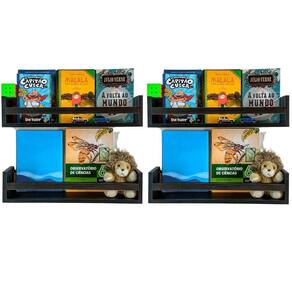 Jogo 4 Estantes Para Livros e Brinquedos Criança Nicho Pelúcia Bonecos Mdf Preto 55cm Prateleiras enviadas montadas para você, de acabamento perfeito. Qualidade comprovada por nossos clientes Fabricação da Arte Cedro decor Pronta para enviar O que vem: Kit 4 Prateleiras porta livros, brinquedos e multiuso. Exclusivo preto madeirado, mais beleza e exclusividade Kit instalação do produto. Decora e organiza todos os ambientes. Pode ser instalado em várias posições de acordo com sua necessidade. Produto perfeito para qualquer área. No quarto pode ser Utilizado como porta livros, pelúcias, brinquedos, enfeites. No banheiro como porta xampu, cosméticos, papel higiênico. Pode ser também fixado invertido para funcionar como cabideiro ou porta toalha. Na cozinha é utilizado como porta temperos, condimentos, potes, etc. Organizador de Sala de leitura, expositor de cosméticos em salão de beleza. Estante muito versátil, com uma infinidade de possibilidades para toda sua casa. Fácil instalação, bastando fixar na parede. Suporta até 8 kilos. Material 100% MDF 15 mm. Acabamento real do mdf, superior á pintura em qualidade e durabilidade Produzido com fita de borda em PVC, incomparável ás de papel utilizadas no mercado MEDIDAS 55 CM comprimento. 12 CM altura. 10 CM largura. Marca: Não Informado