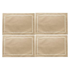 Jogo 4 Lugar Americano Bege de Poliester e Linho Natural para Mesa 45x30cm Lyor