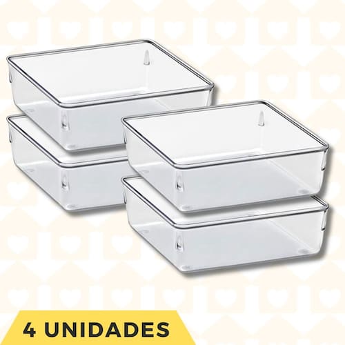 Jogo 4 Melhores Organizadores Transparente Acrilico Quadrados