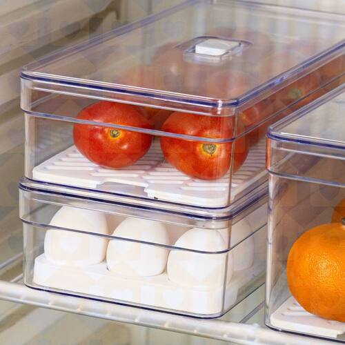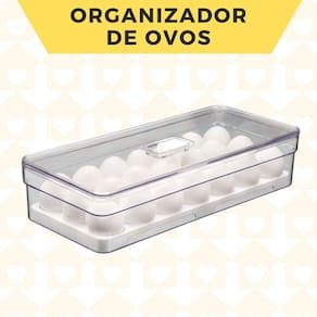 ORGANIZADOR DE OVOS - 21 UNIDADES - 3,6L O organizador de ovos com tampa clear fresh é o novo padrão de transparência na organização da sua geladeira. Empilhe, encaixe e enxergue facilmente os ovos armazenados na geladeira, mantendo tudo em ordem. Seu design foi pensado para permitir armazenagem no interior da geladeira ao invés da porta, evitando troca de temperaturas constantes que podem deteriorar os ovos, mantendo uma rotina sem desperdícios. Produzido em material resistente, super transparência, beleza e cuidado com o alimento são características da linha, perfeitas para auxiliar na organização da sua geladeira e facilitar o seu dia a dia.